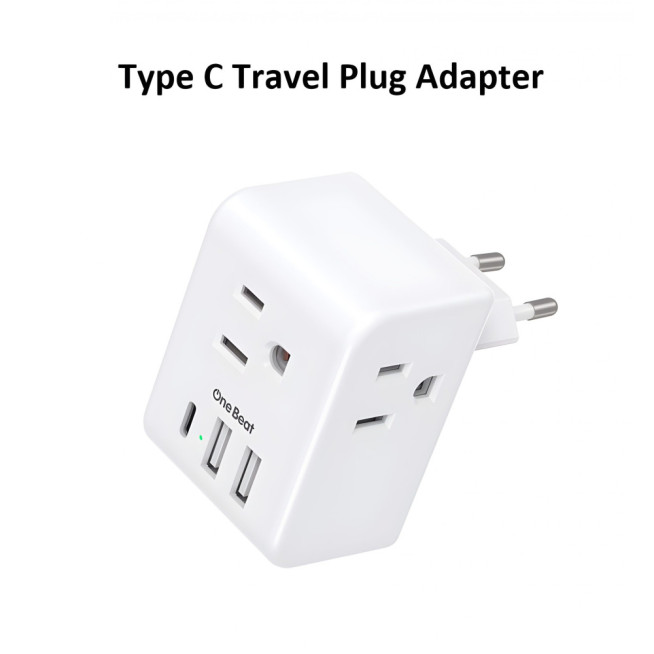 EU Travel Plug Adapter with 3x Power Outlets, 3x USB Charging Ports (1 USB-C), US to Type C International Travel Plug Adapter