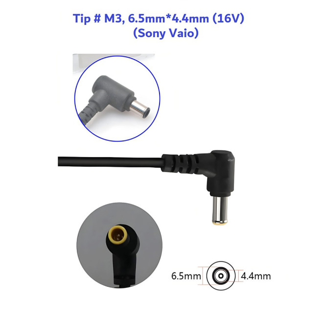 Tip # M3: 6.5x4.4mm 16V 65W 90W Universal Replacement AC Power Adapter for Sony Vaio