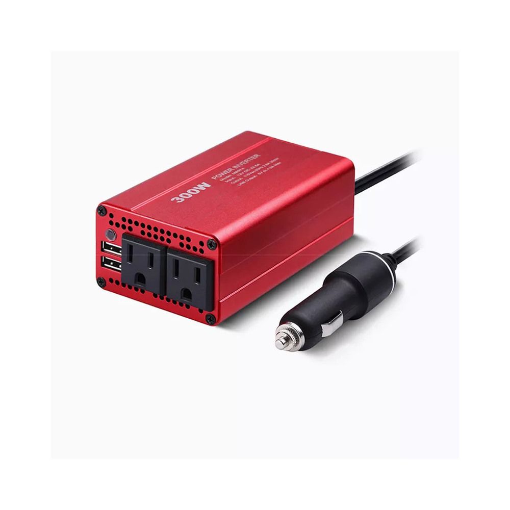 - 300W Car Power Inverter, DC 12V to 110V AC Converter for Vehicle, Car Adapter with 2x AC Power Outlet and Dual USB Car Charger Total 5.4A Output, Red