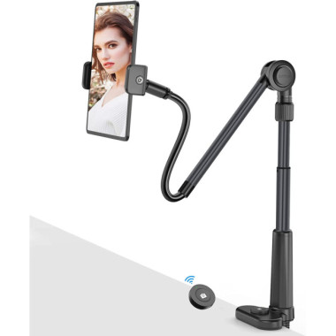 4.6"-11" Phone & Tablet Bed Holder,gooseneck Cellphone Stand Long arm,Flexible Overhead Mount clamp Clip for Desk Bedside headboard, Recording Filming, for iPhone/iPad/Tablet/Samsung