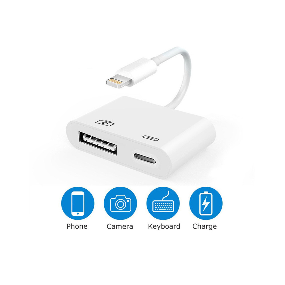 OTG USB Camera Adapter with Charging Port, 8Pin to USB Female OTG Adapter Compatible with iPhone & iPad, Plug and Play Support Card Reader and More
