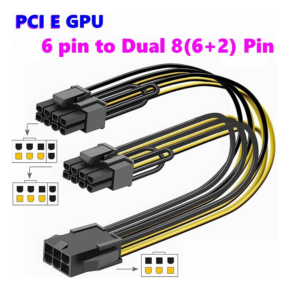 6 Pin Female to Dual 8 Pin (6+2) Male PCIe Express Power Adapter Video Graphics Card PSU Cable \n