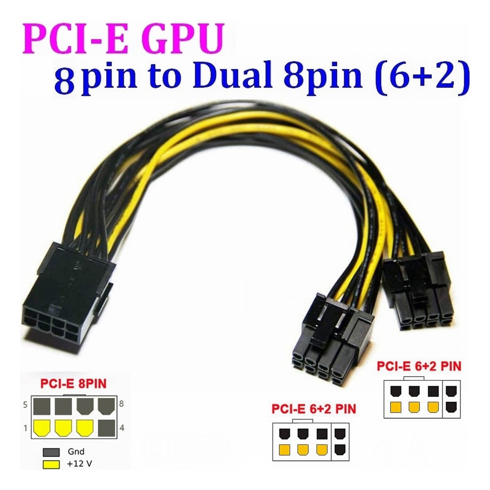 18AWG PCI-E GPU 8Pin to Dual 8Pin (6+2) Power Supply Cable, Length: 24cm, 8 Pin Female to Dual 8 Pin (6+2) Male PCIe Express Power Adapter Video Graphics Card PSU Cable
