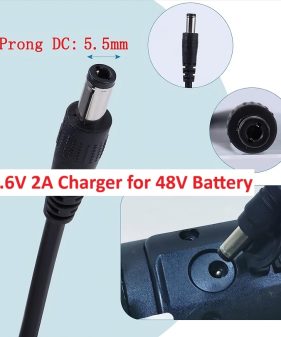 *** Input:100-240V AC 50/60HZ, 54.6V 2A Lithium battery charger for 48V Lithium battery pack, AC cable 1M length US Plug 2pin with C7 socket, DC cable 1M length with 5.5*2.5mm ***