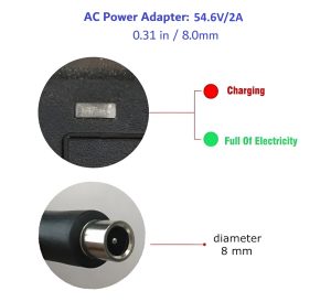 54.6V 2A Replacement Power Adapter with RCA 8mm Plug for Ausom 48V Leopard Off-Road Electric Scooter