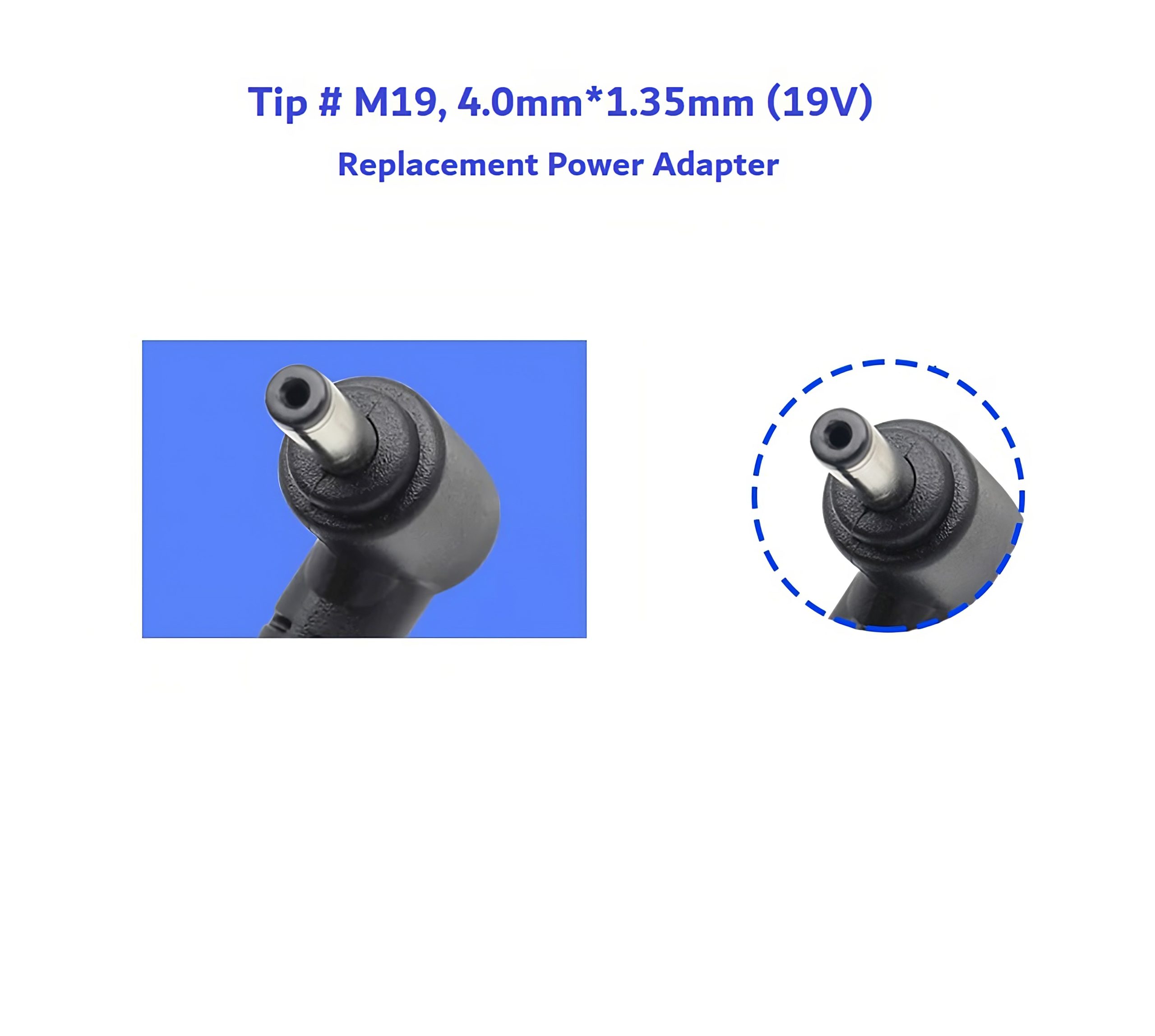 - 19V/3.42A with 4.0mm*1.35mm Plug for Asus Laptop, Chromebook, Plug#M19