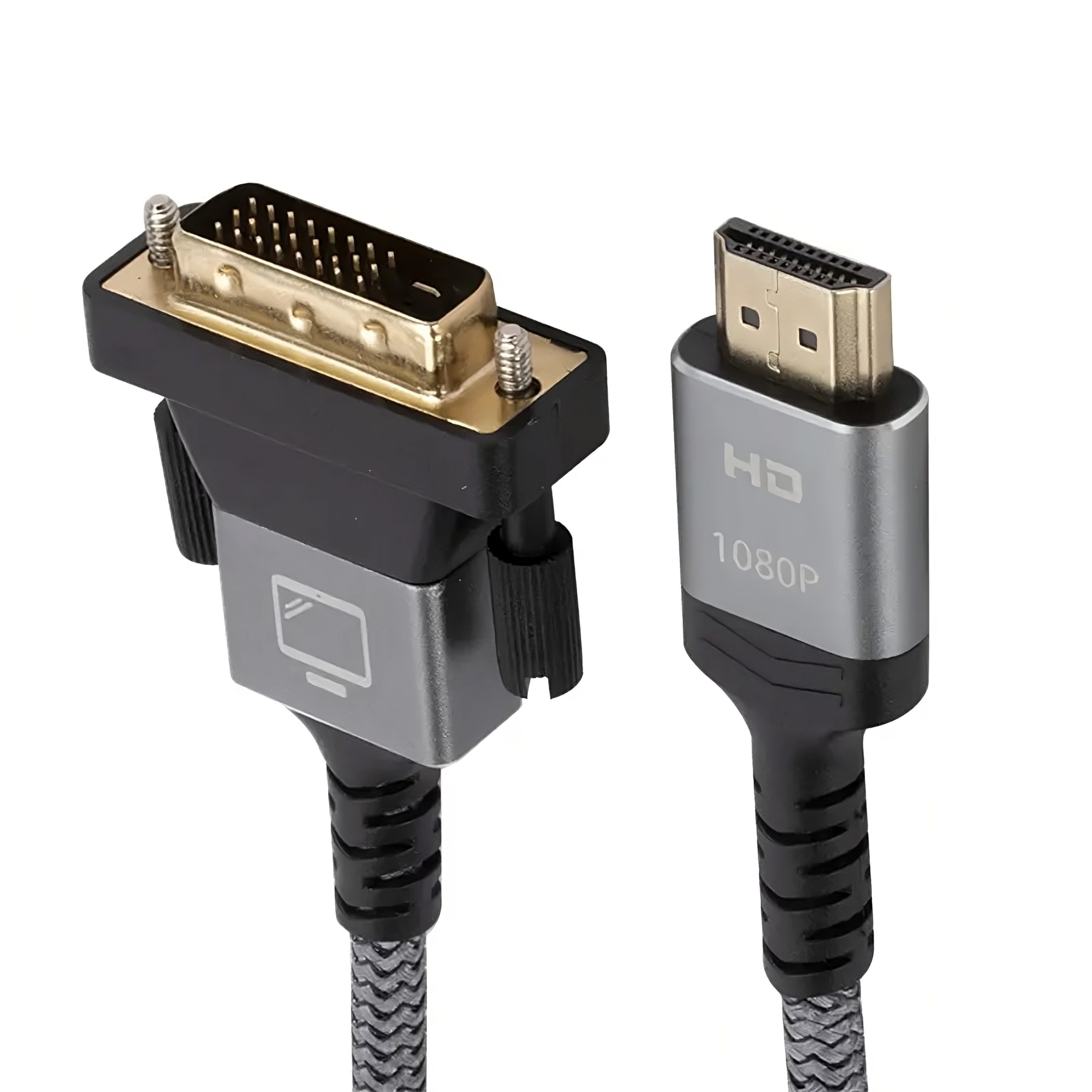 - HDMI to DVI-D Cable Bi-Directional Nylon Braid Support 1080P Audio Video Adapter Converter HDMI Male to DVI Male Cable