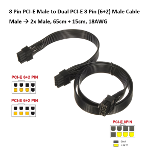 - 18AWG GPU 8 Pin Male to Dual 8Pin(6+2) Male PCI-E Video Graphics Card Power Splitter Extension Cable, PCIE 8 Pin Male to Dual Pcie 8pin(6+2) Male Cable, GPU Power Adapter Cable