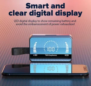H3 TWS Headset Stereo Touch Earbuds with Microphone LED Display Mirror Wireless Headphone (Black)