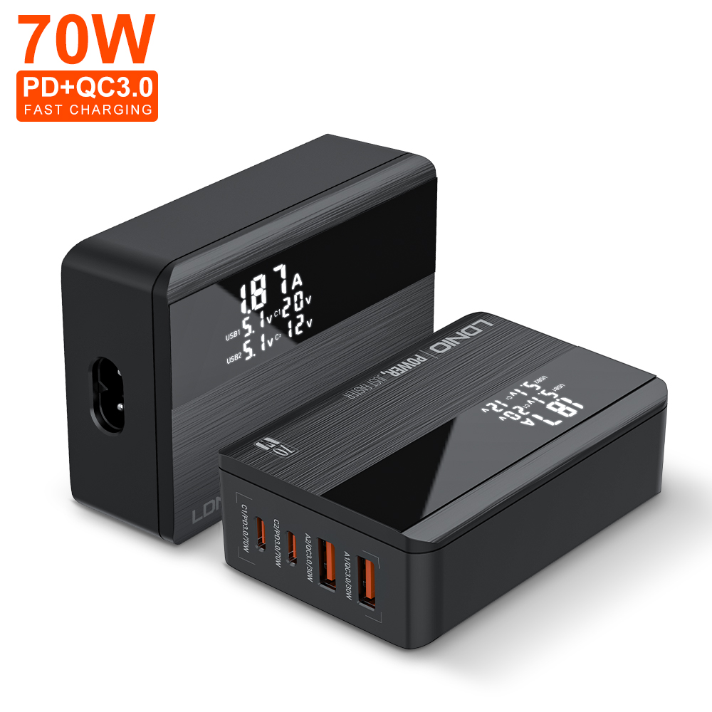High Quality 70W PD Super Fast Charger with LED Display 4 Port USB Desktop Adapter Universal Mobile Phone Laptop Charger