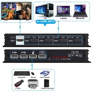 KVM HDMI 4×1 Multiviewer Switch 4K HDMI KVM 4 in 1 Out Seamless Quad Multi-Viewer Video Cutting Segmentati Switcher for 4 PC