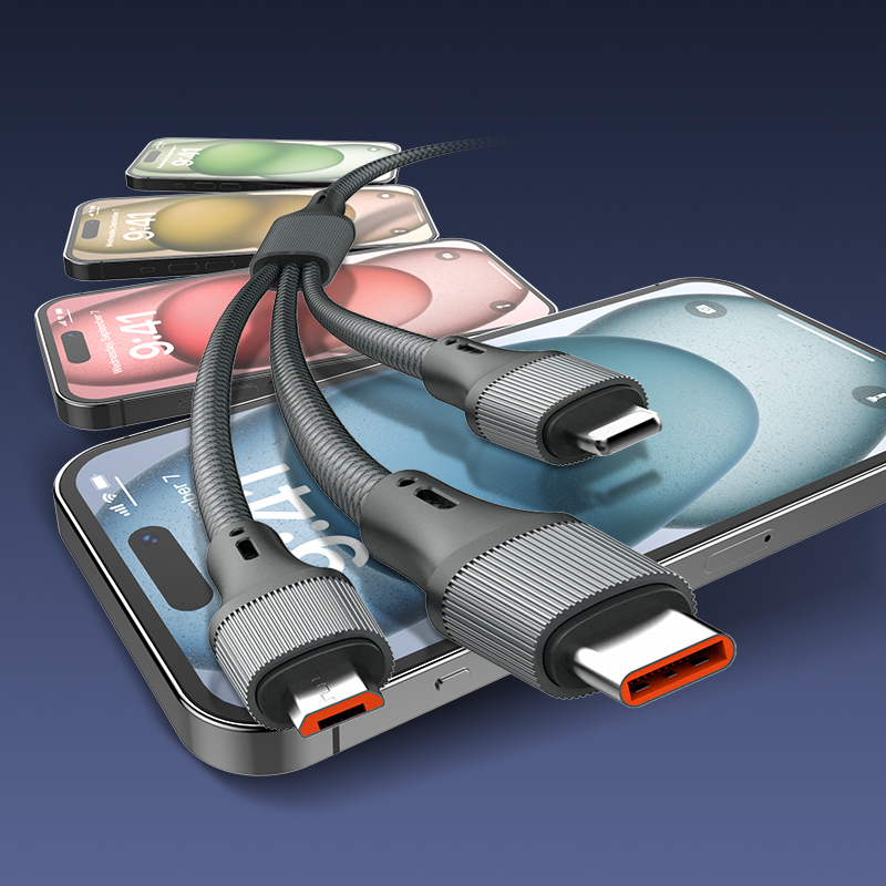 - 100W USB-A to Lightning/Micro/USB-C Fast Charging & Data Transfer Cable